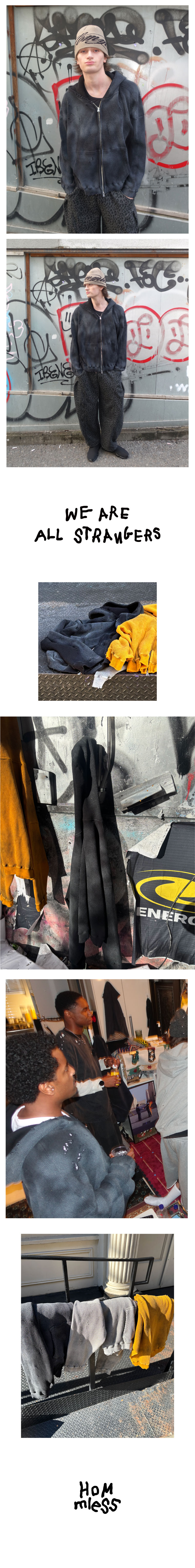 *색상은 제품컷과 가장 유사하며 해상도에 따라 차이가 있을 수 있습니다. *데미지 디테일을 유지하기 위해, 드라이클리닝 혹은 울세탁을 권장합니다. • Unisex • Boxy cropped drop shoulder fit • Once machine washed • Hand distressing and vintage dirty washing • 2-way Zipper Cotton100%