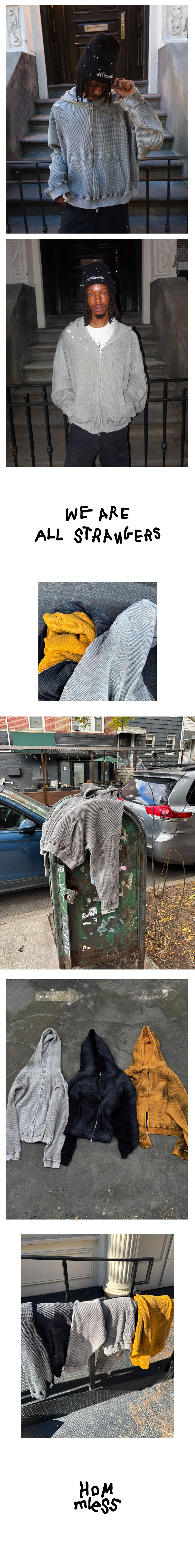 홈리스 디스트레스 빈티지 와플 집업 후드 그레이