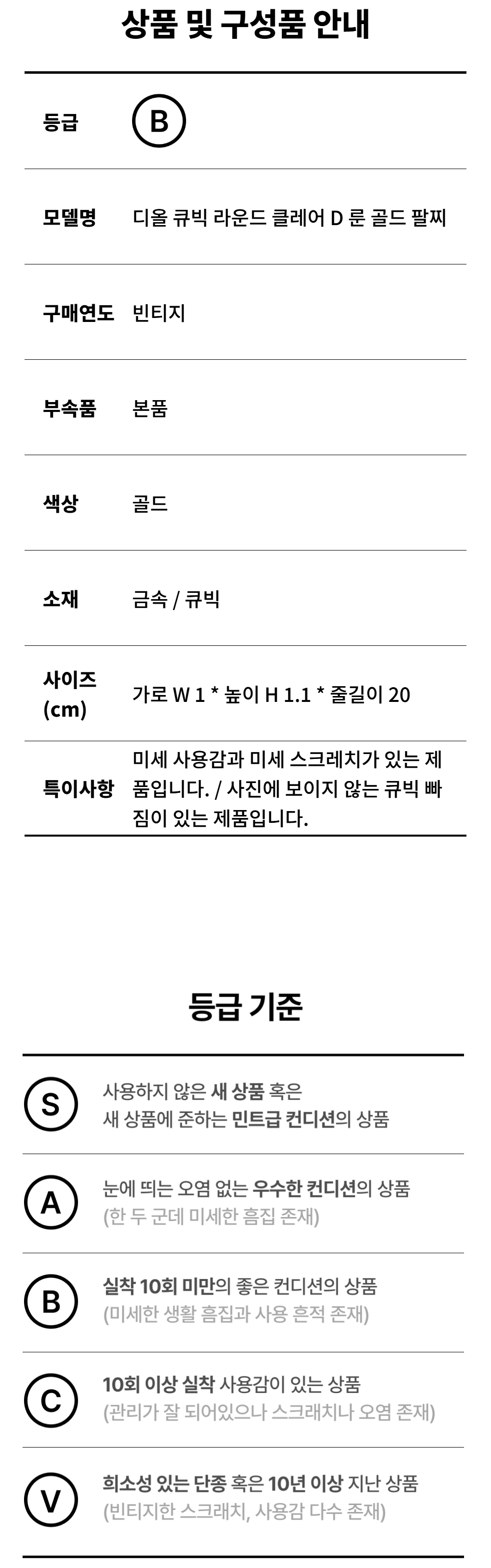 디올 큐빅 라운드 클레어 D 룬 골드 팔찌 A-B45439