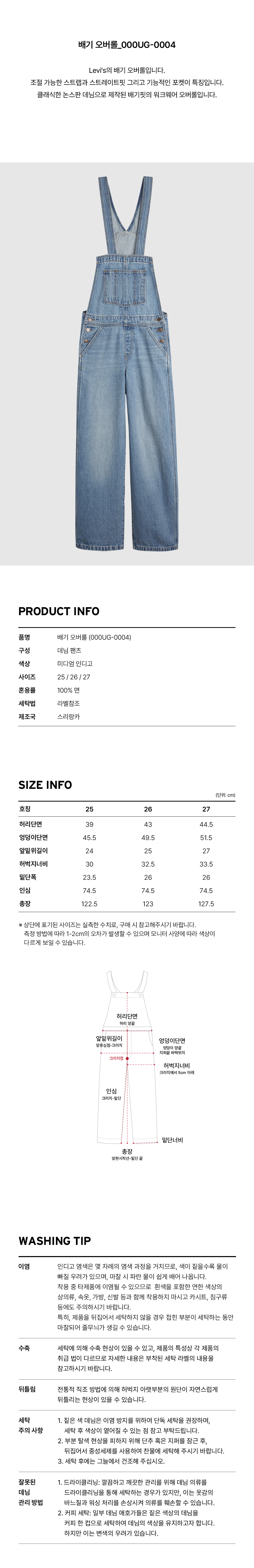 리바이스 배기 오버롤 미디엄 인디고