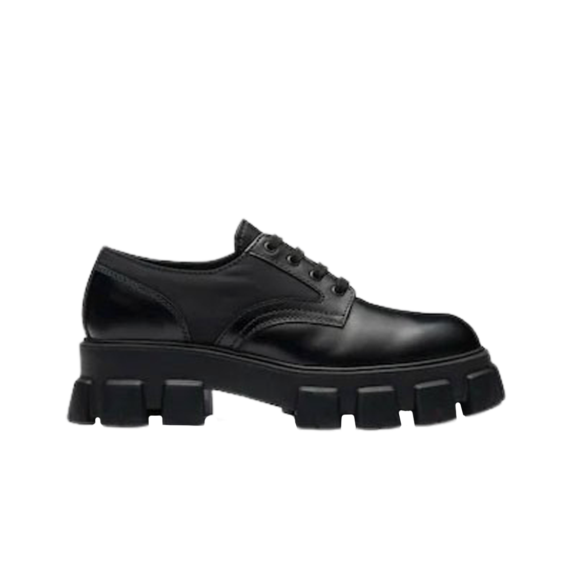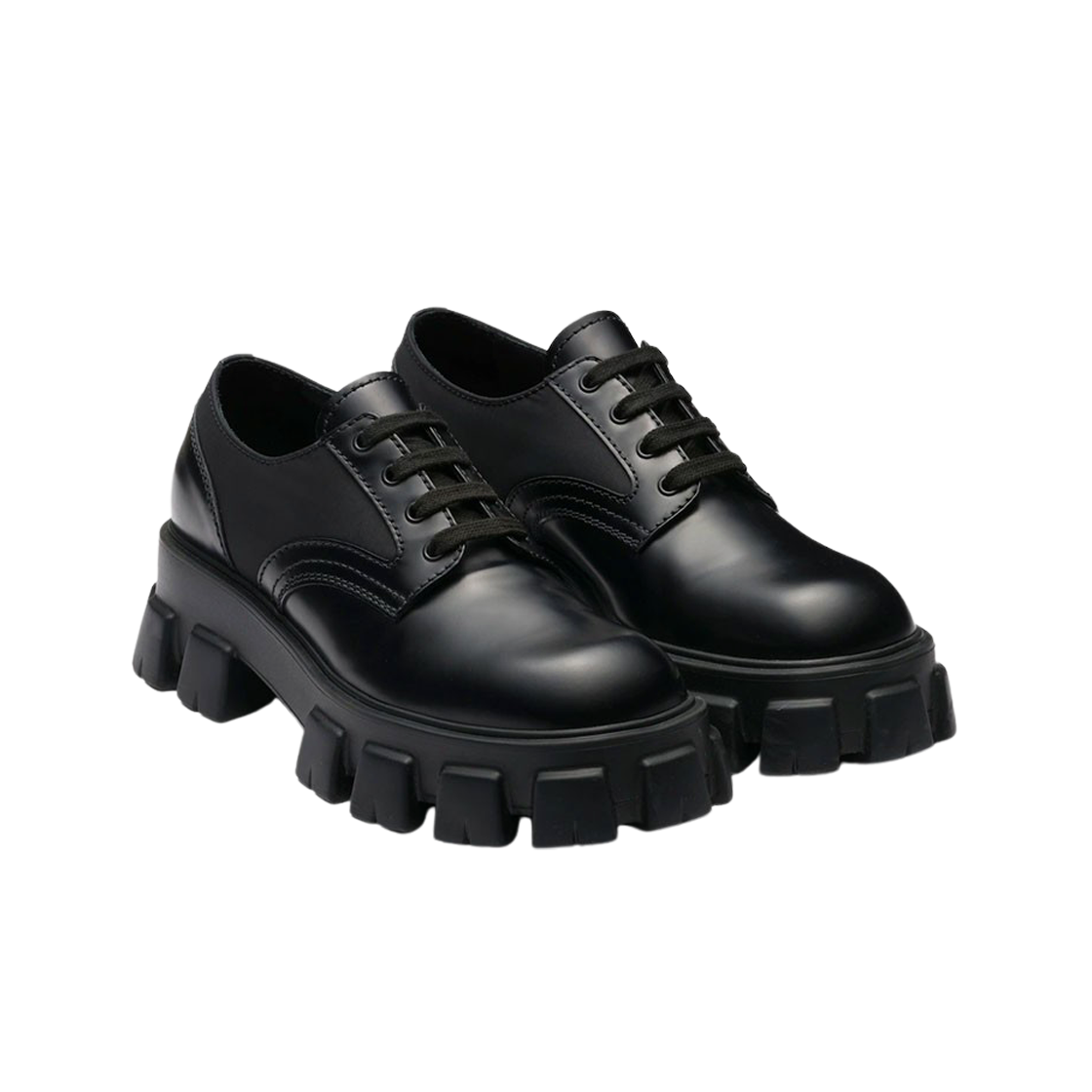 프라다 모놀리스 브러쉬드 로이스 레더 & 나일론 레이스업 슈즈 블랙