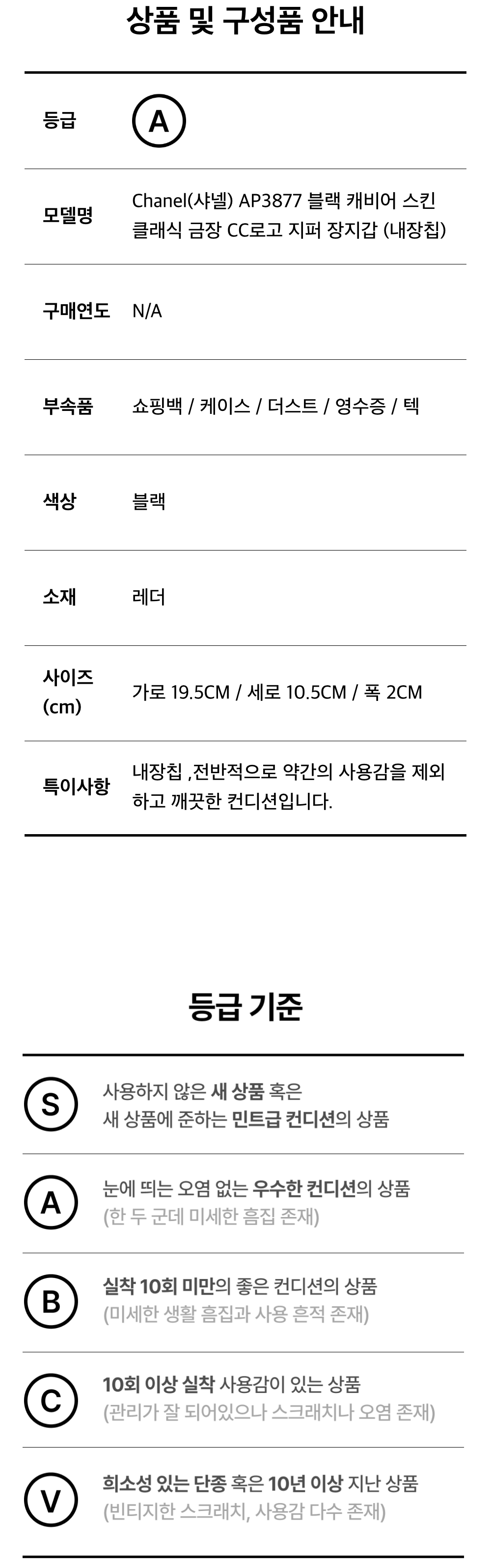 샤넬 AP3877 블랙 캐비어 스킨 클래식 금장 샤넬 로고 지퍼 장지갑 (내장칩)