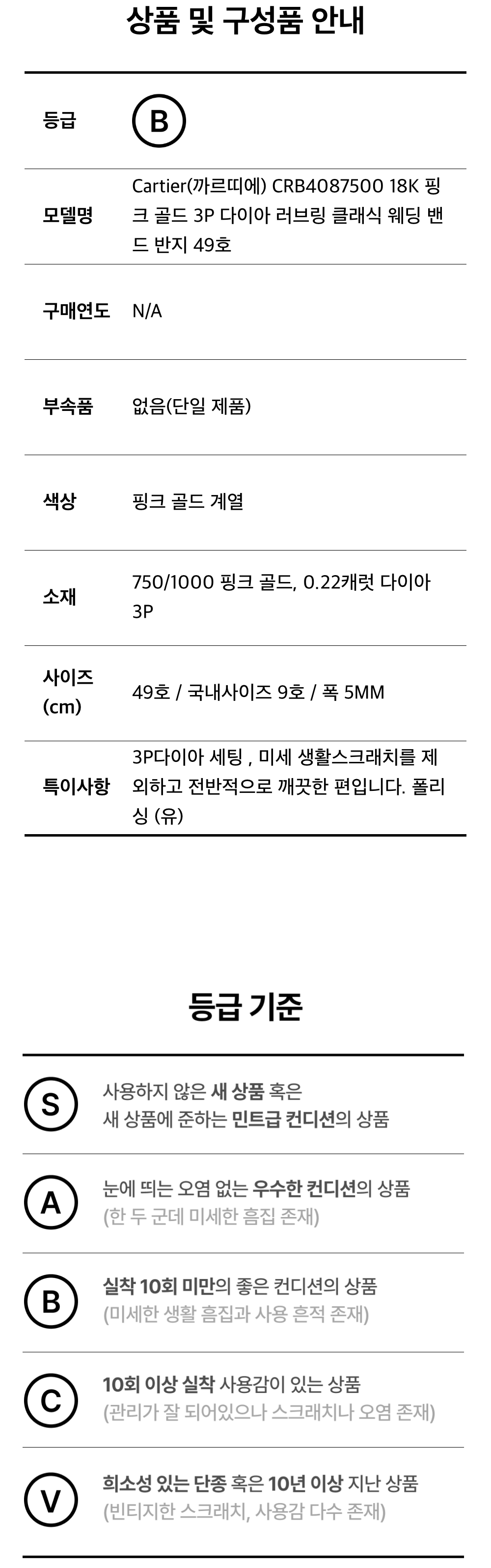 까르띠에 CRB4087500 18K 핑크 골드 3P 다이아 러브링 클래식 웨딩 밴드 반지 49호