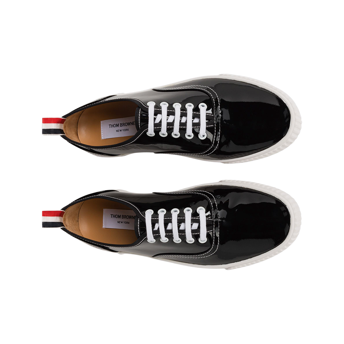 (W) Thom Browne Soft Patent Lether Heritage Sneakers Black