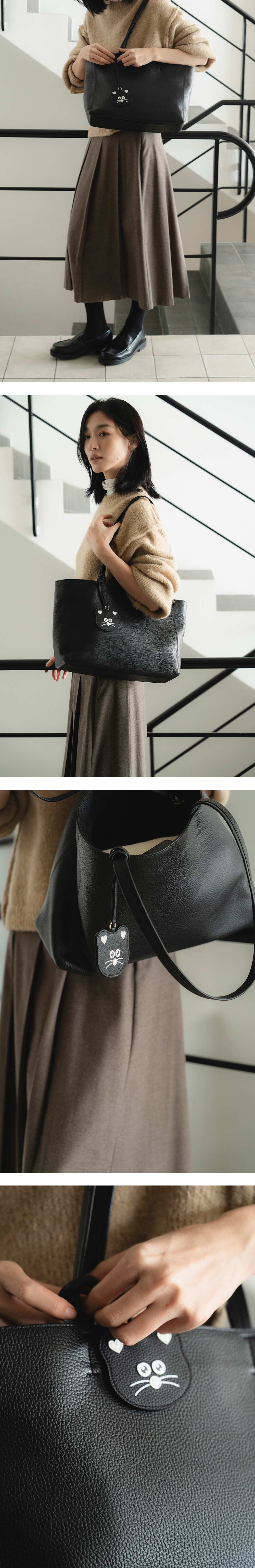 MNH와의 협업으로 제작된 레더 백참입니다. 이태리 천연가죽을 사용해 섬세한 디테일과 완성도를 높였으며, 귀여운 MNH 페이스 쉐입을 고급스럽게 표현했습니다. 부드러우면서도 탄탄한 가죽 질감과 자연스러운 결이 특징으로, 사용할수록 더욱 깊어지는 멋스러운 에이징을 느끼실 수 있습니다. 백참으로 가방에 포인트를 더하거나, 키링으로도 활용 가능한 실용적인 아이템으로 일상 속 다양한 연출을 즐겨보세요.