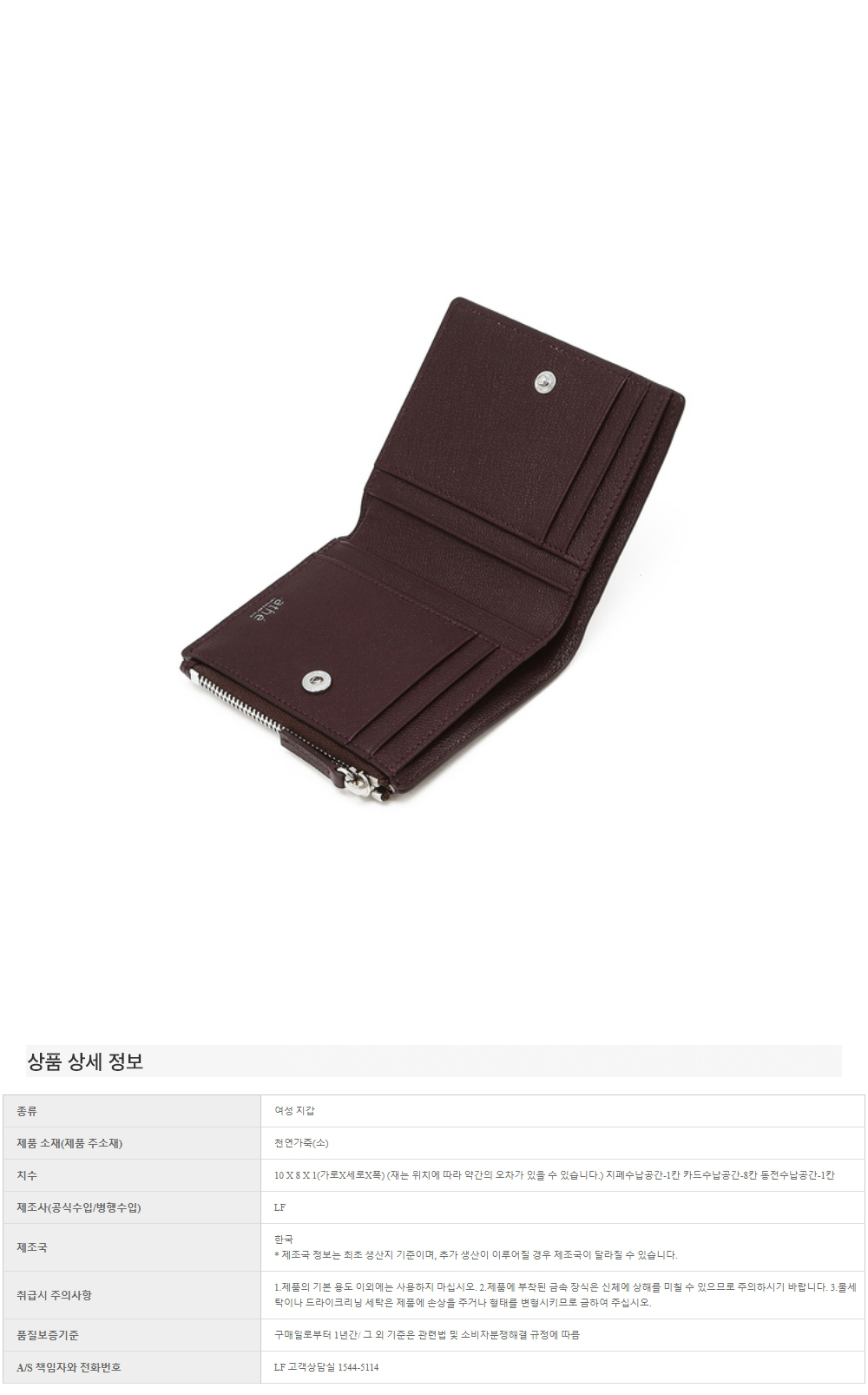 아떼 바네사브루노 액세사리 버건디 더블에이 슬림 2단 지폐 버건디