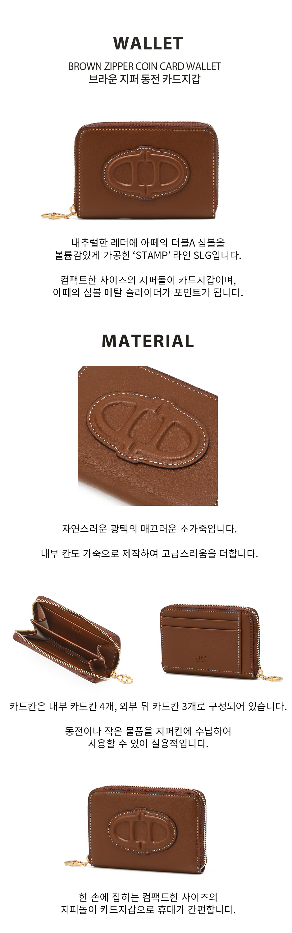 아떼 바네사브루노 액세사리 스탬프 브라운 스탬프 지퍼 동전 카드지갑 브라운