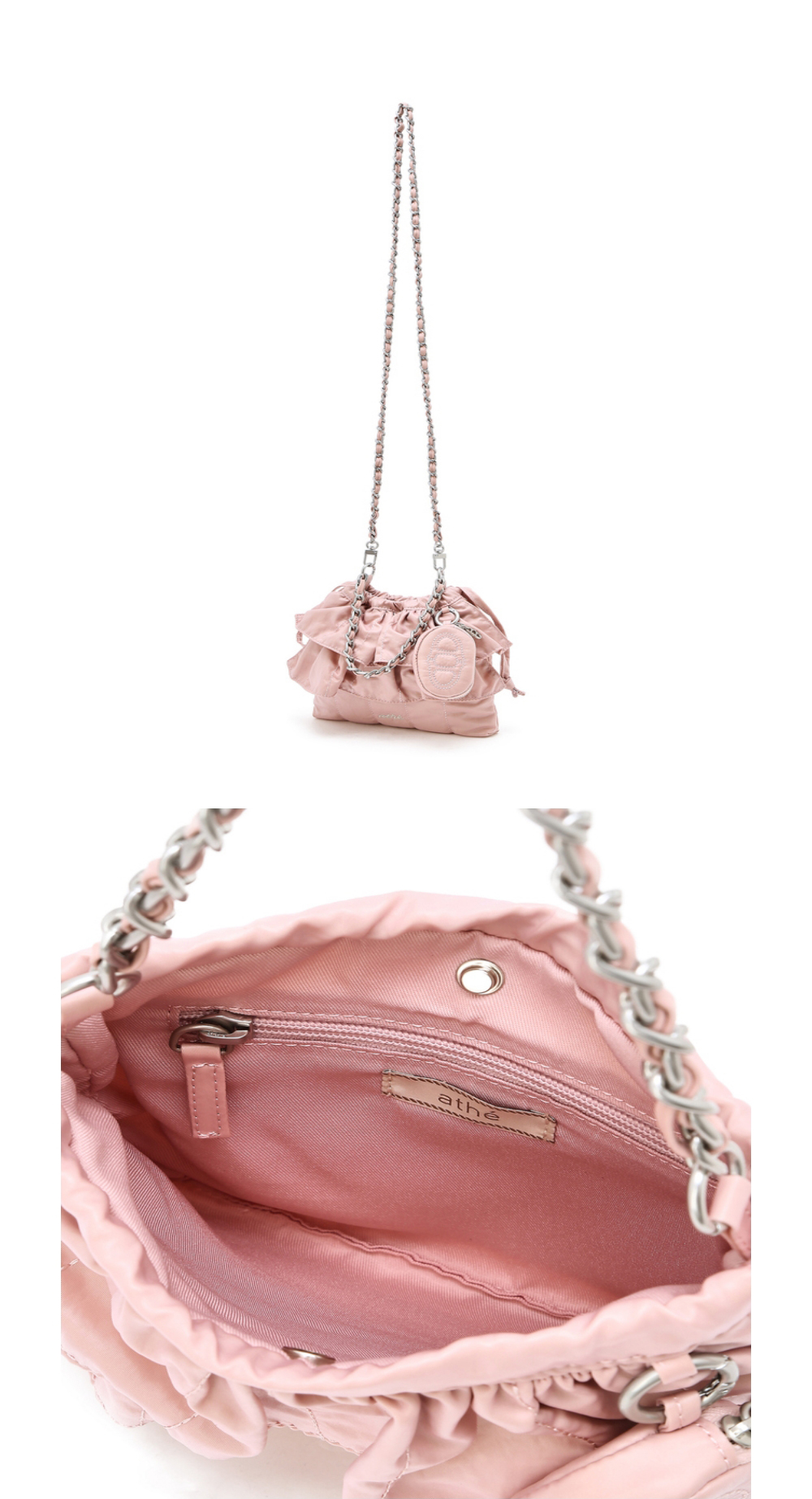 아떼 바네사브루노 액세사리 프릴 핑크 듀프스킨 미니크로스 S 라이트 핑크