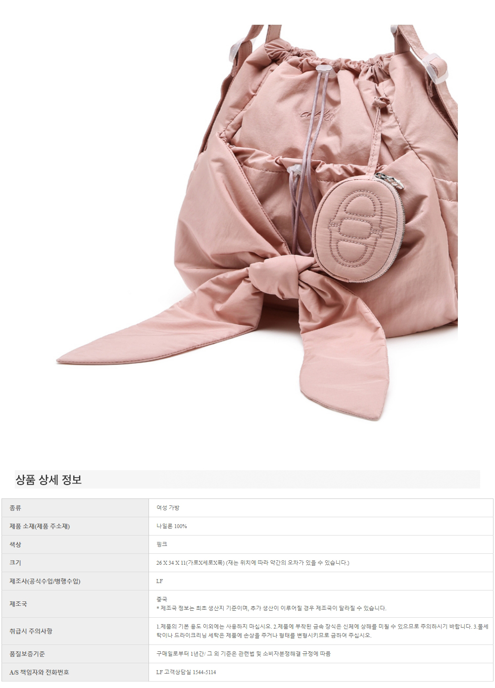 아떼 바네사브루노 액세사리 르봉 핑크 리본 백팩 겸 숄더백 S 핑크