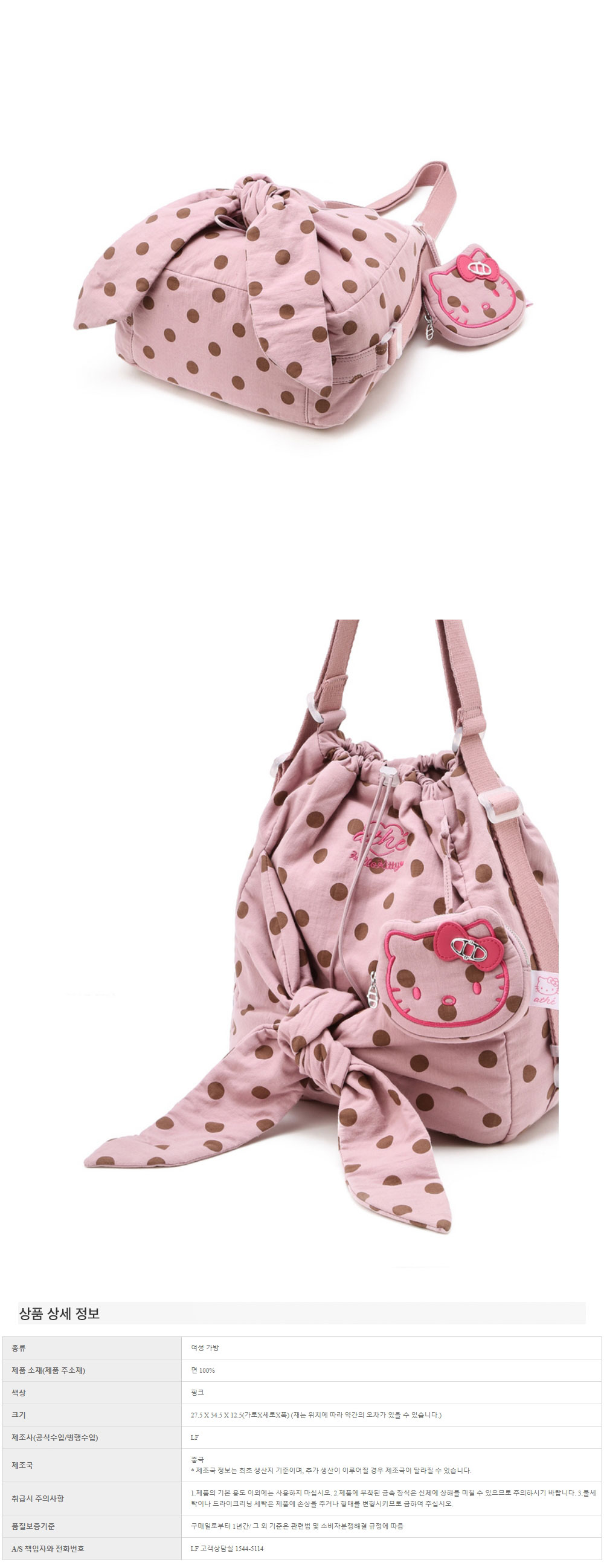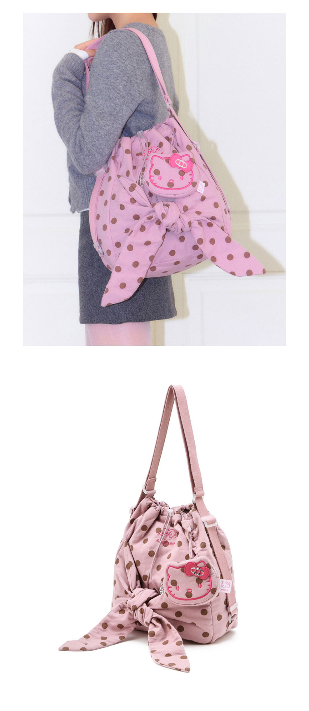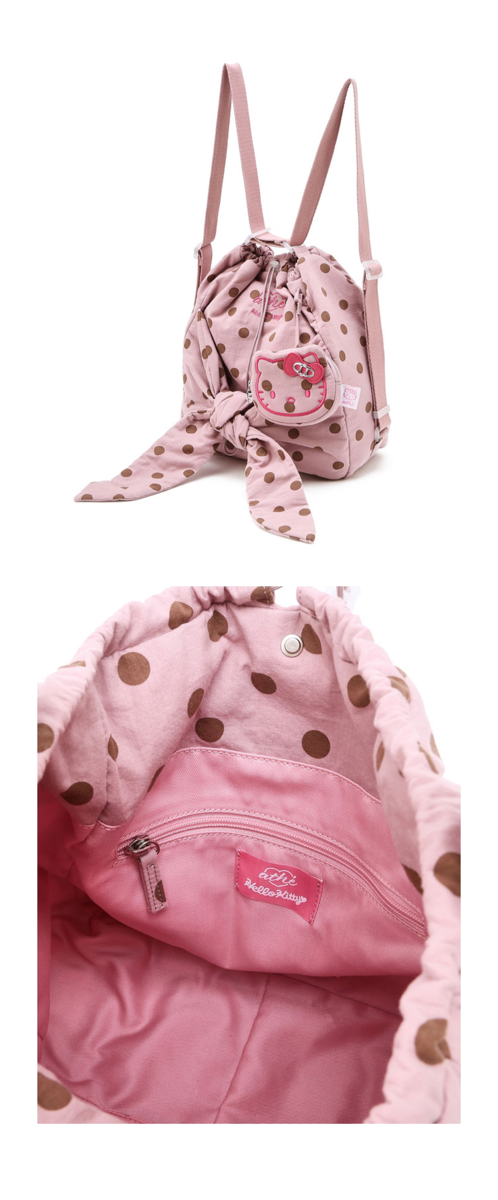 헬로 키티 x 아떼 르봉 도트 핑크 백팩 겸 숄더백S 핑크