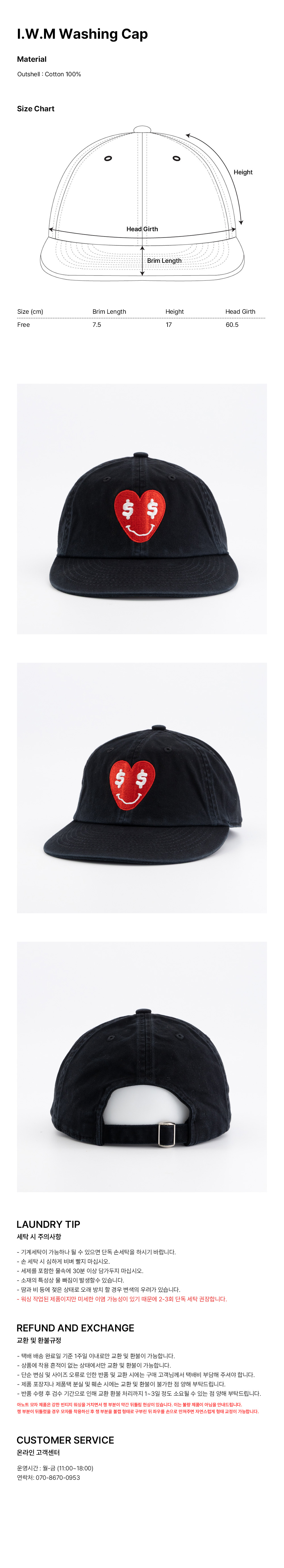 아노트 I.W.M 워싱 캡 블랙