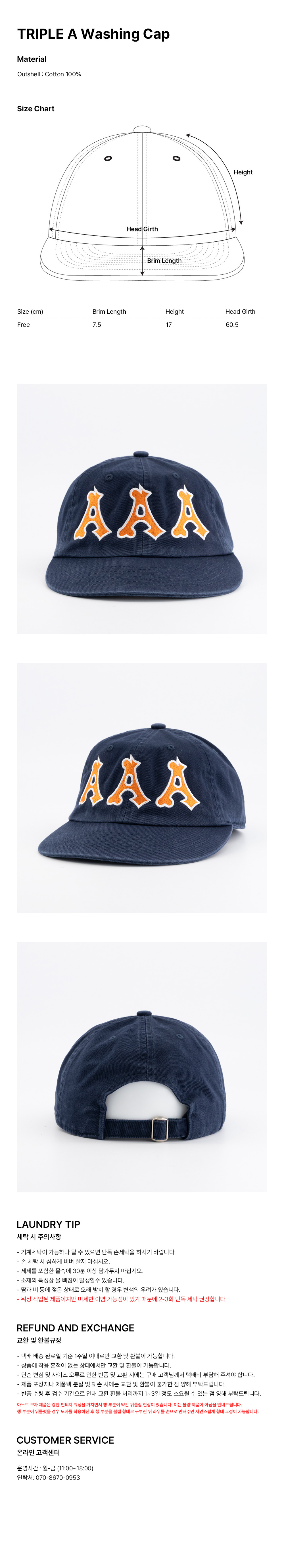 아노트 TRIPLE A 워싱 캡 네이비