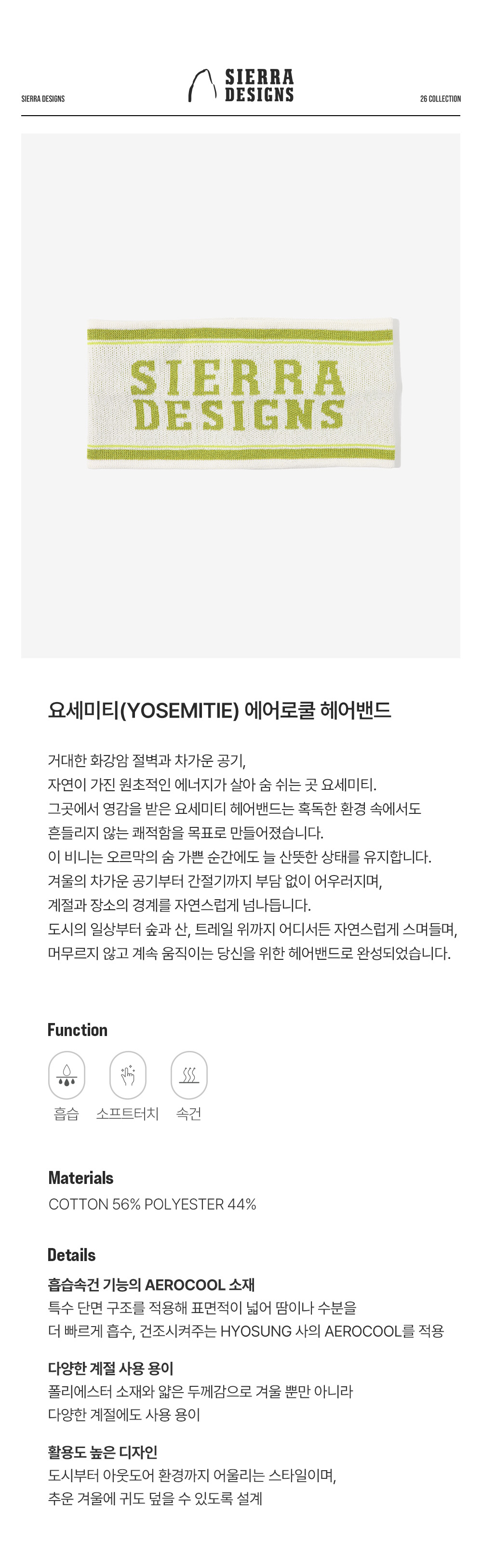 [6% 적립] 시에라디자인 요세미티 에어로쿨 헤어밴드 아이보리