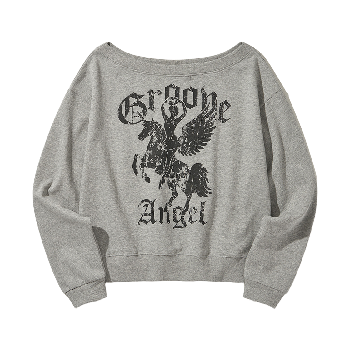 Product Description. ㆍ핏: 오버핏, 크롭핏 ㆍ오버사이즈 실루엣, 크롭한 기장으로 원숄더, 오프숄더 연출이 가능합니다. ㆍ모든 체형 착용 가능한 프리 사이즈 ㆍ전면 Groove Angel 그래픽 프린팅 Product Size & Info. Size : One Size Color : Black, Gray Material : Cotton 100% One Size : Length 54 / Shoulder 59 / Chest 53 / Hem 45 / Sleeve Length 56 Washing Tip. Dry cleaning + Only hand washing 드라이 클리닝 또는 손세탁을 권장하며 케어 라벨을 참고해 주세요. MADE IN KOREA.