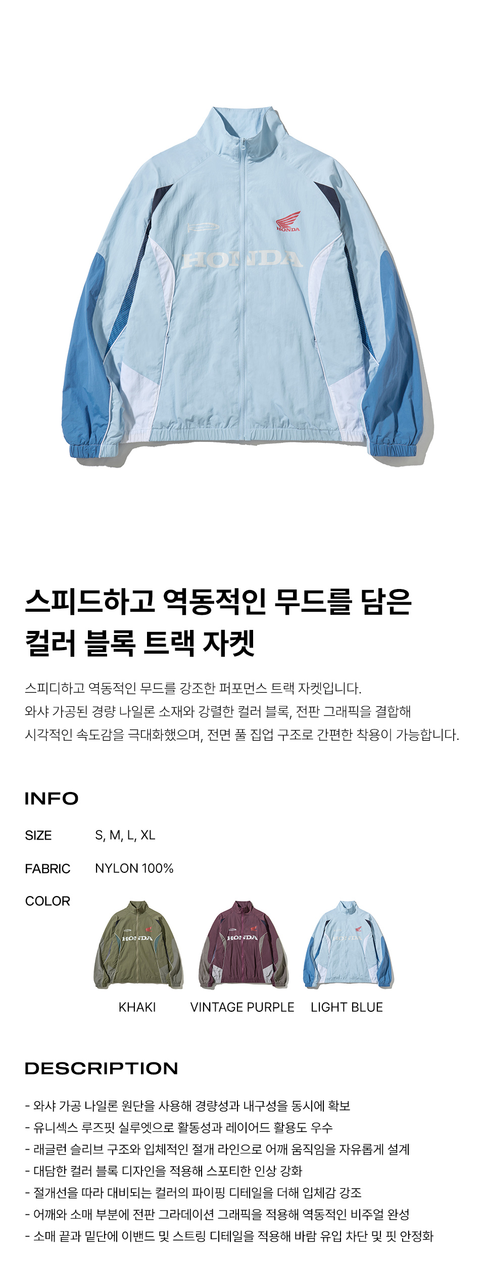 [KREAM 단독] Honda Track Zip Up Jacket Light Blue