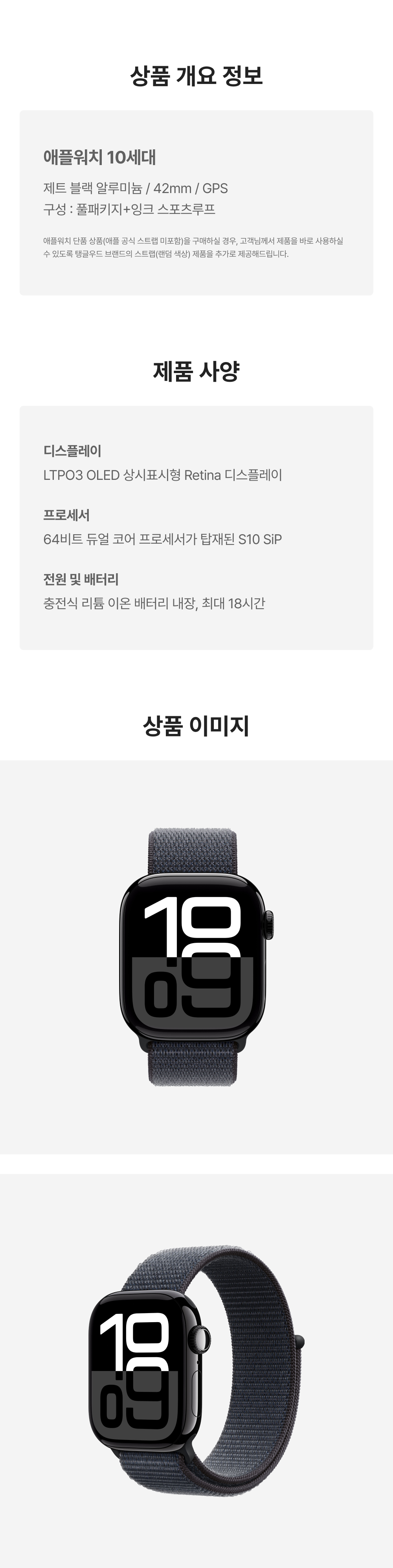 [S등급] 리퍼비시 애플워치 10 42mm GPS 제트 블랙 알루미늄 케이스 스포츠 루프 잉크
