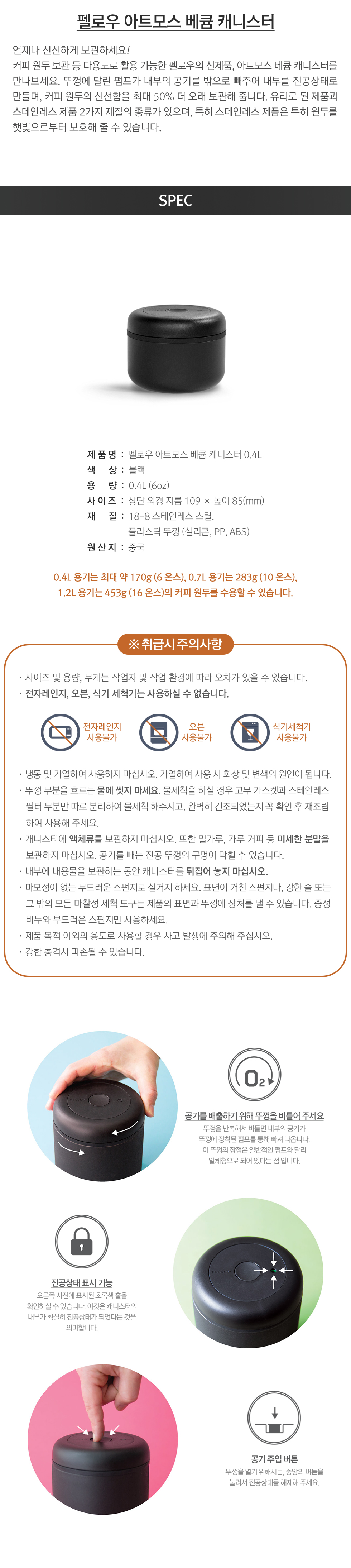 펠로우 아트모스 캐니스터 0.4L-블랙