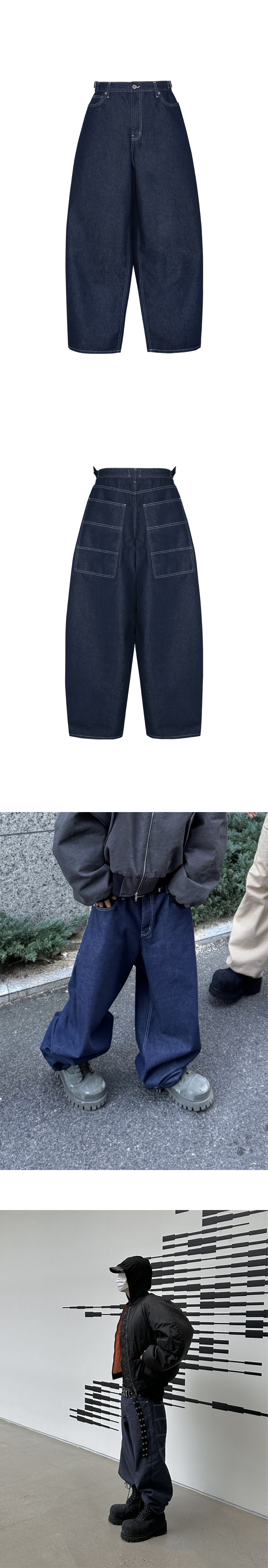이염을 최소화한 인디고 원단으로 만든 데님입니다. 배기핏으로 제작되었고 뒷판에 빅포켓을 통해 포인트를 주었습니다. 허리 조절 버클을 사용하여 착용 시 체형에 맞게 착용 할 수 있습니다.