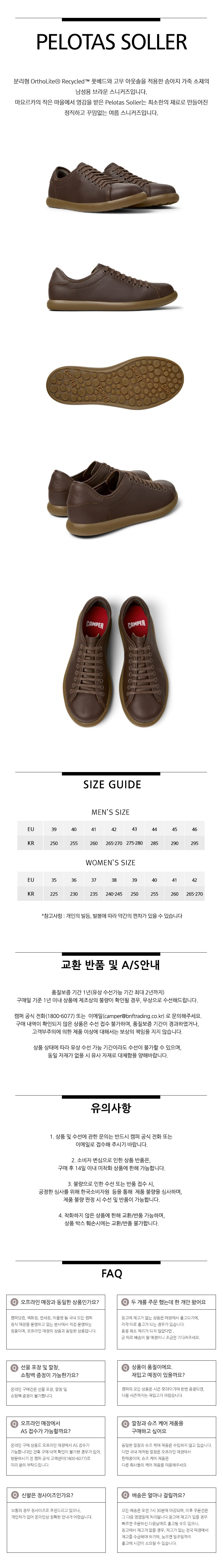 캠퍼 남성 펠로타스 솔라 스니커즈 브라운