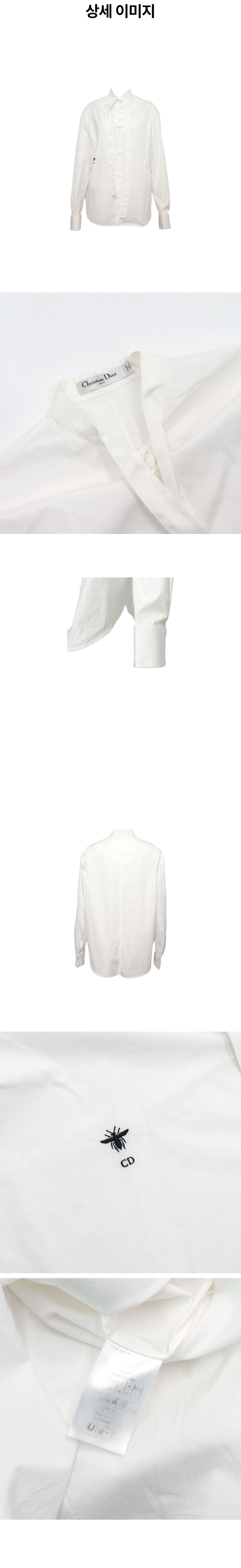 디올 441B39A3356 화이트 코튼 포플린 애스콧 타이 보우 여성 블라우스aa59830