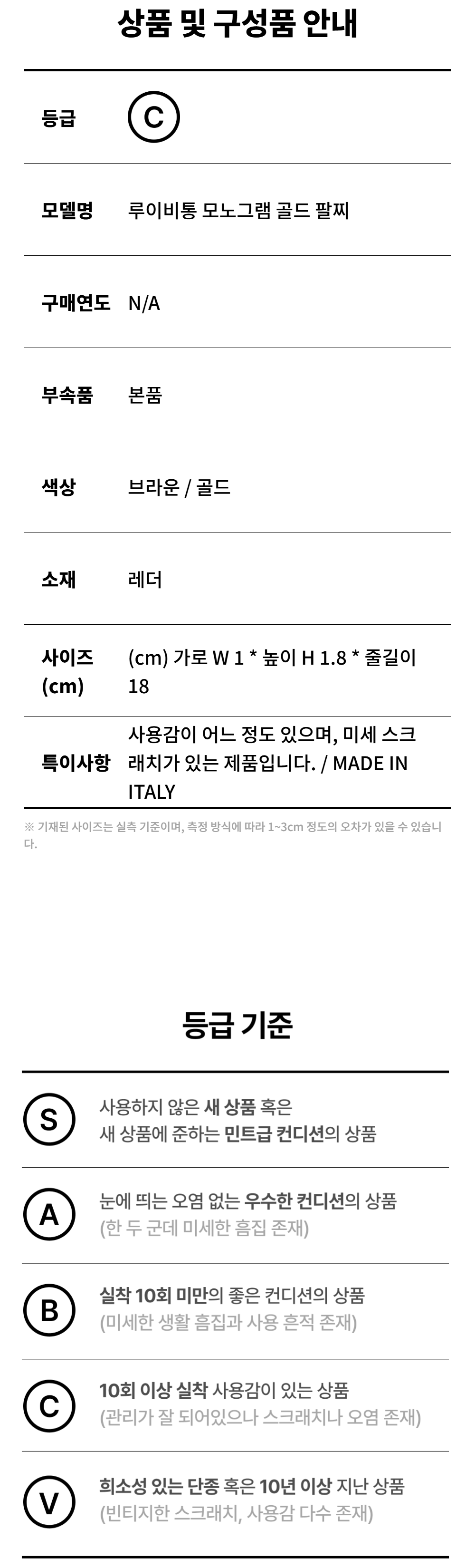 루이비통 모노그램 골드 팔찌 C-B46143