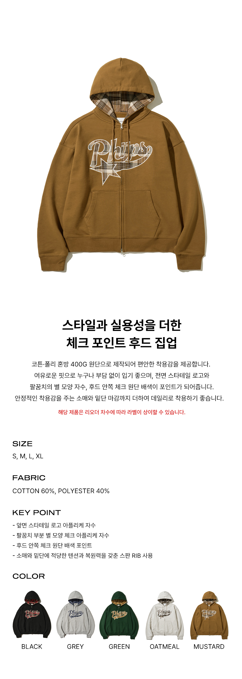 피지컬 디파트먼트 체크 스타테일 엘보우 패치 후드집업 머스타드