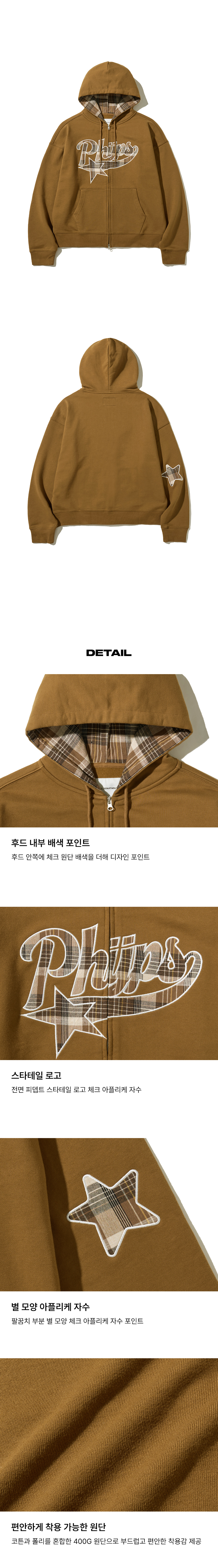 Phyps Dept Check Star Tail Elbow Patch Hoodie Zip-Up Mustard