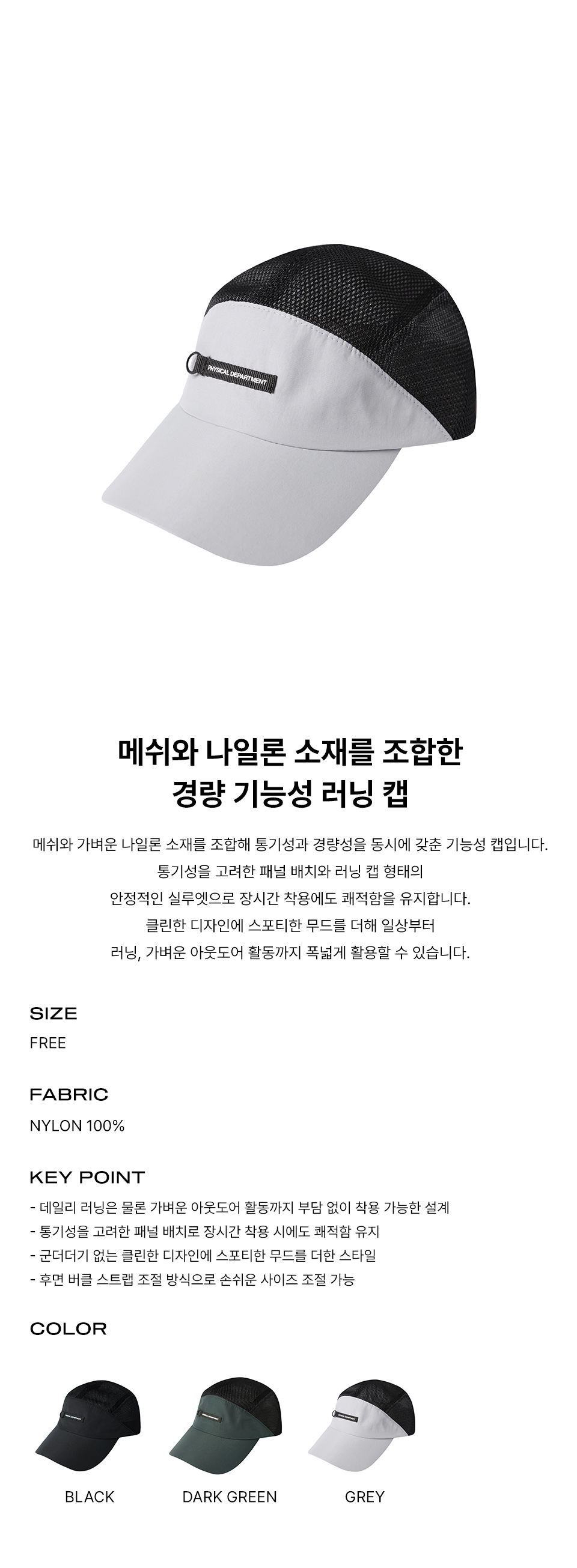 피지컬 디파트먼트 나일론 메쉬 믹스 스트링 캡 라이트 그레이