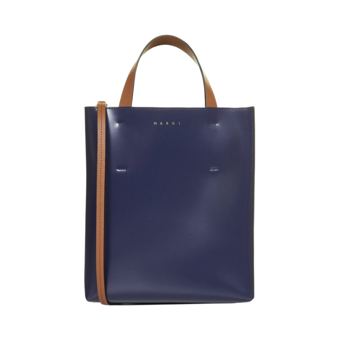 Marni North/South Leather Museo Small Bag Blue Black Shell Mocha