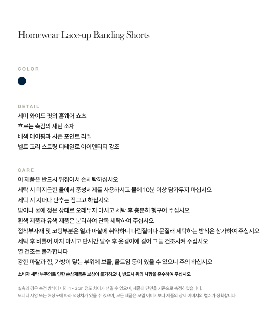 세터 홈웨어 레이스업 밴딩 쇼츠 네이비