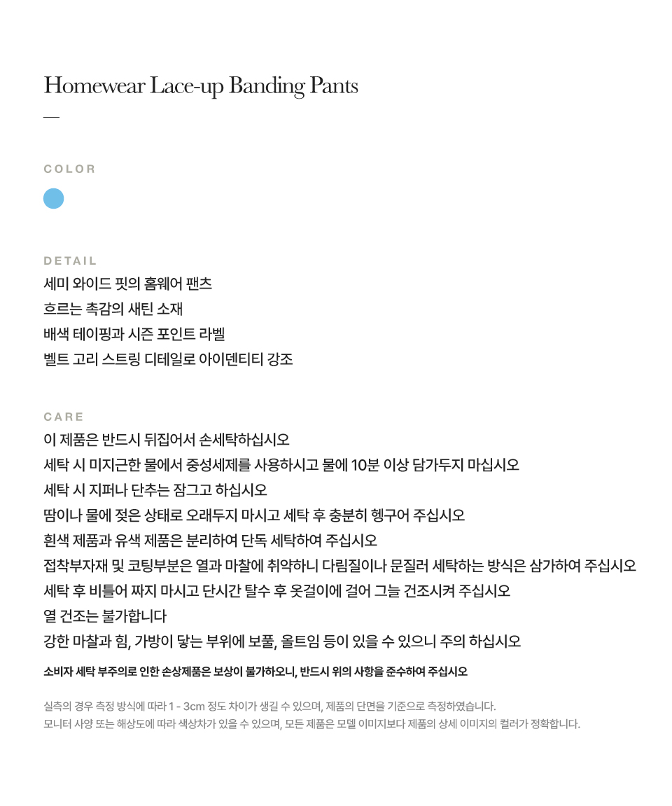 세터 홈웨어 레이스업 밴딩 팬츠 스카이 블루