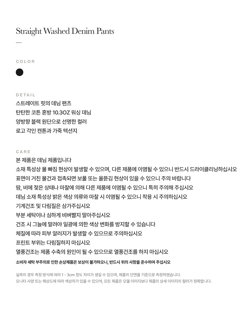 세터 스트레이트 워시드 데님 팬츠 블랙
