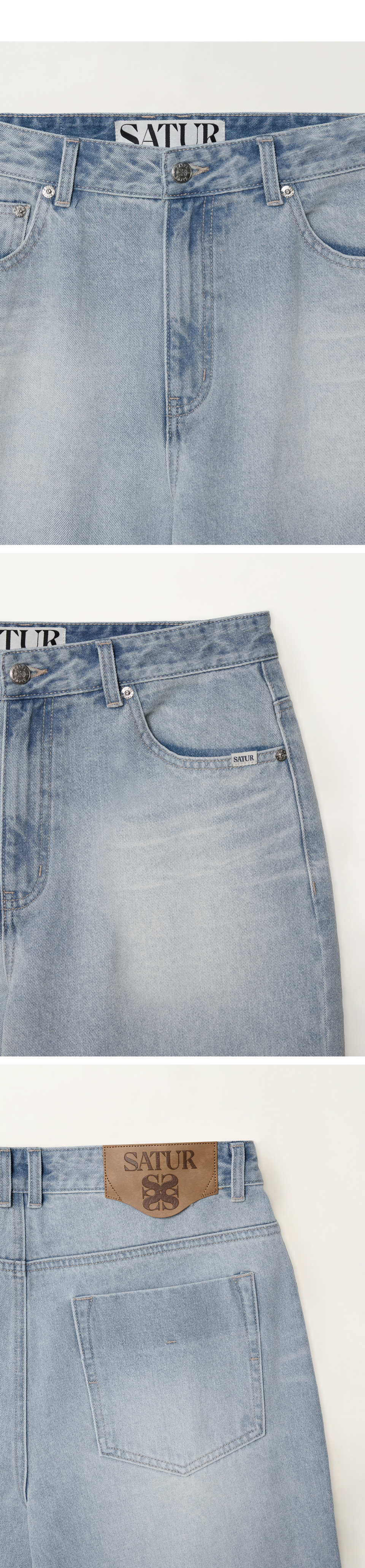 SATUR Straight Washed Denim Pants Light Blue
