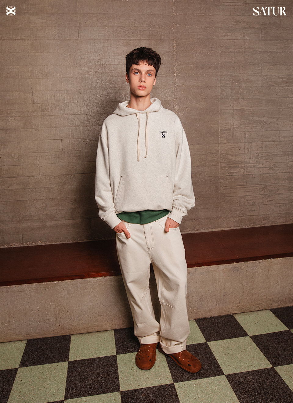 [사은품 증정] SATUR Loren Small Logo Rivet Hoodie Oatmeal