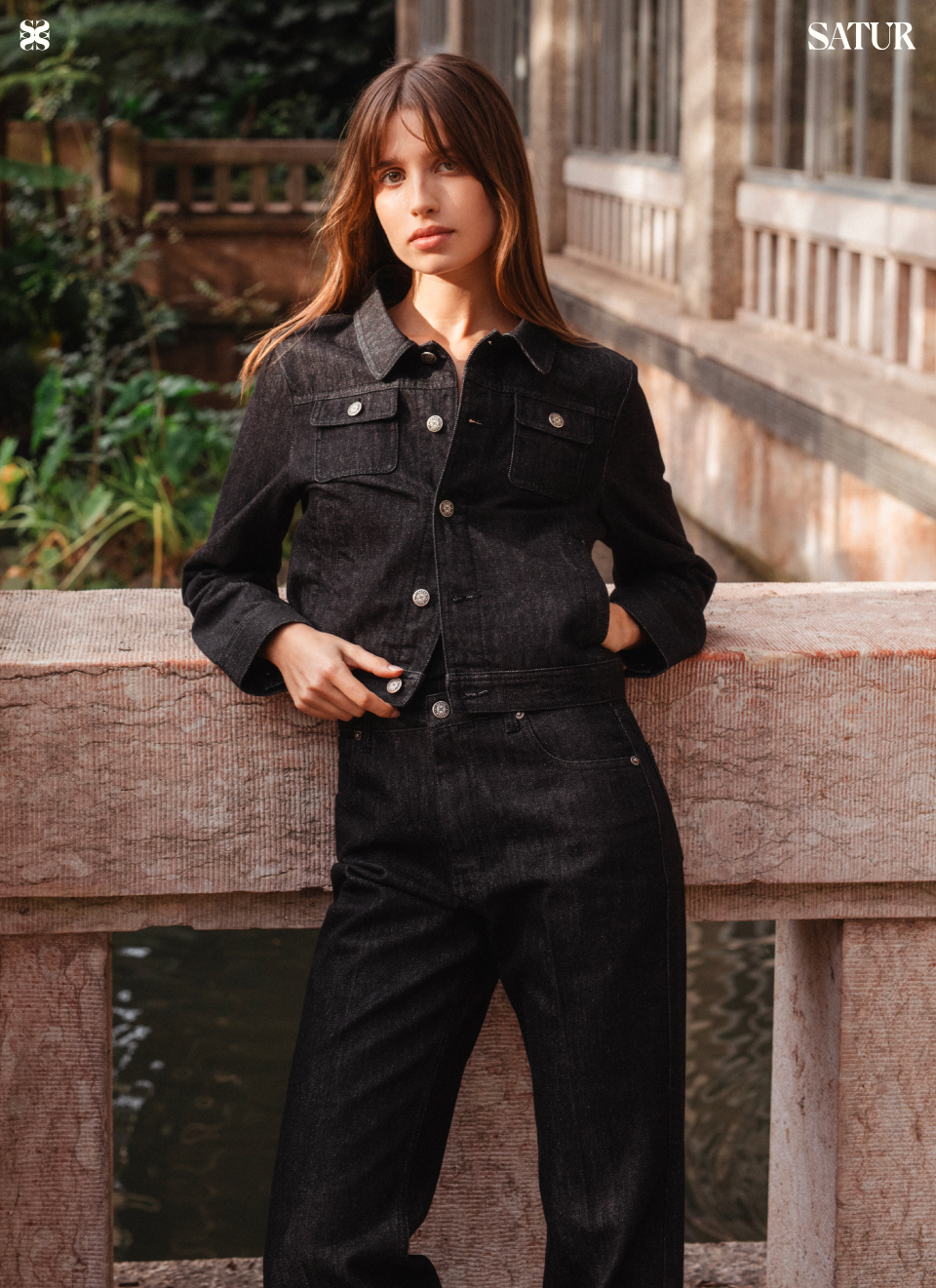 [사은품 증정] SATUR W Classic Nonfade Denim Trucker Jacket Black