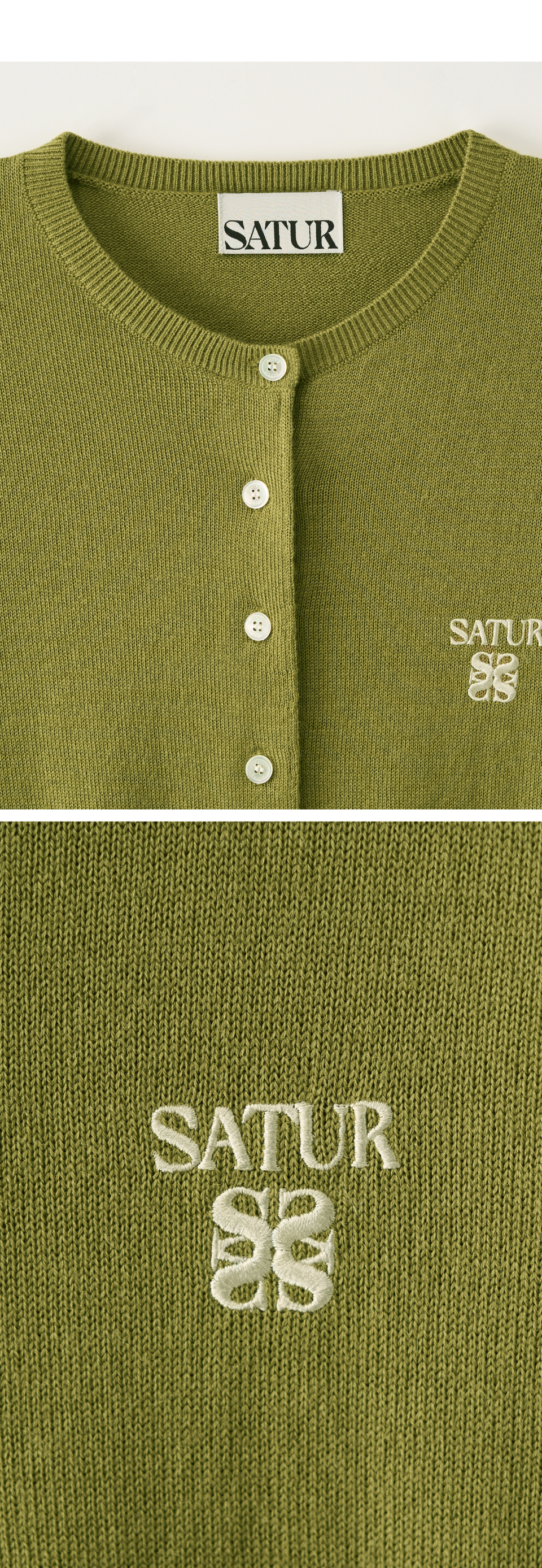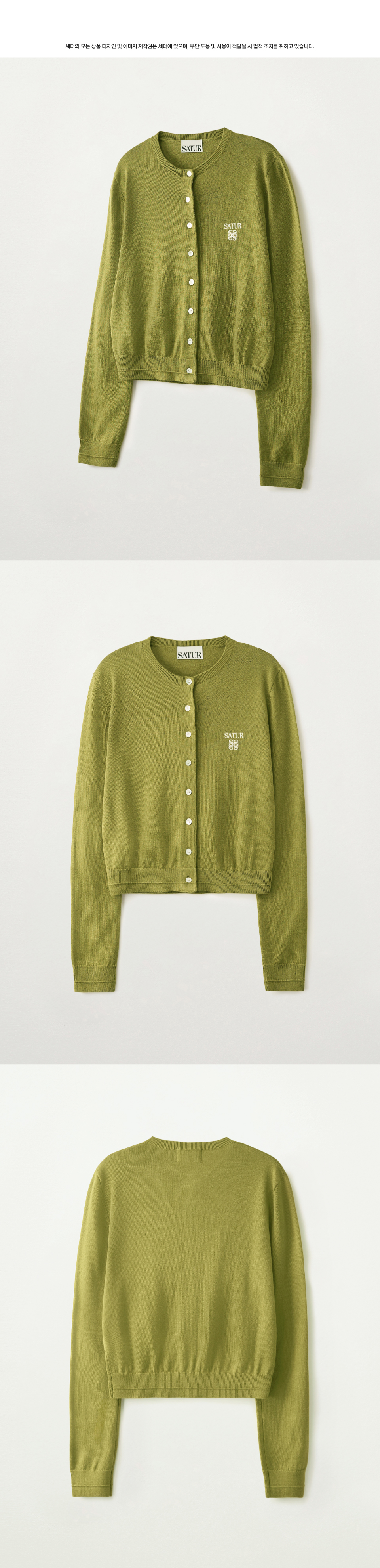 [사은품 증정] SATUR W Loren Basic Crewneck Fine Cardigan Olive Green