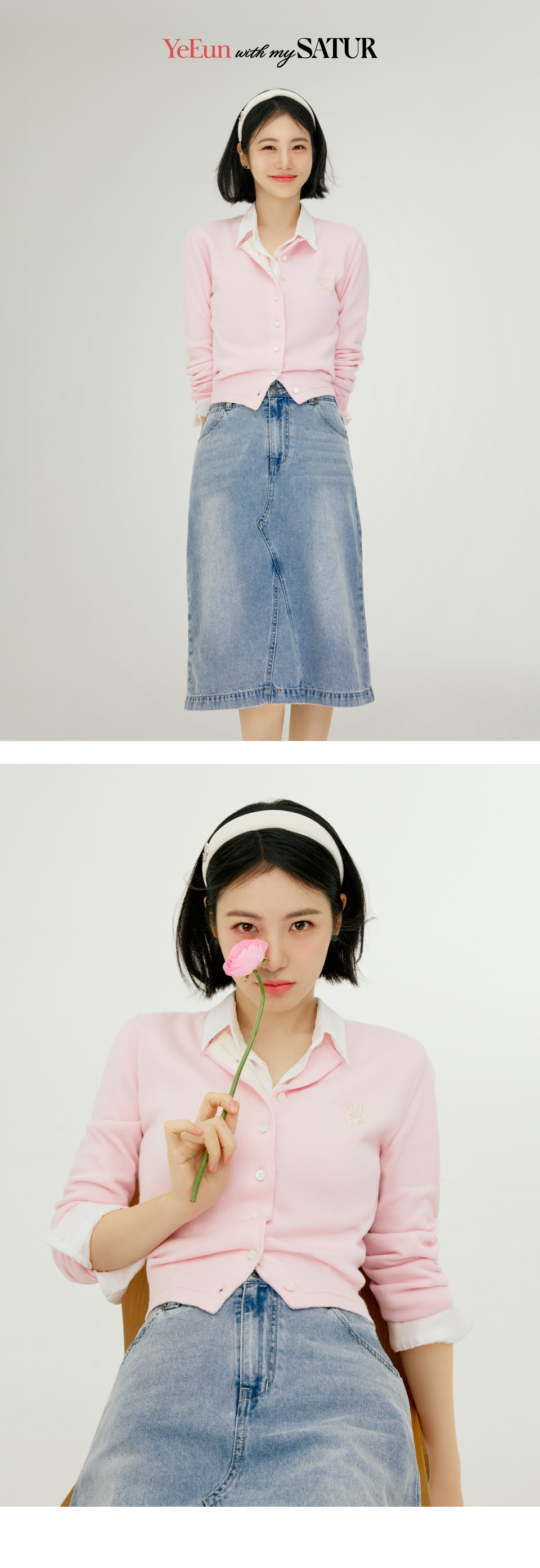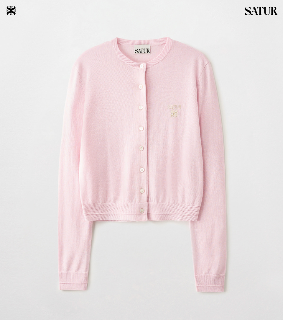 SATUR W Loren Basic Crewneck Fine Cardigan Pink