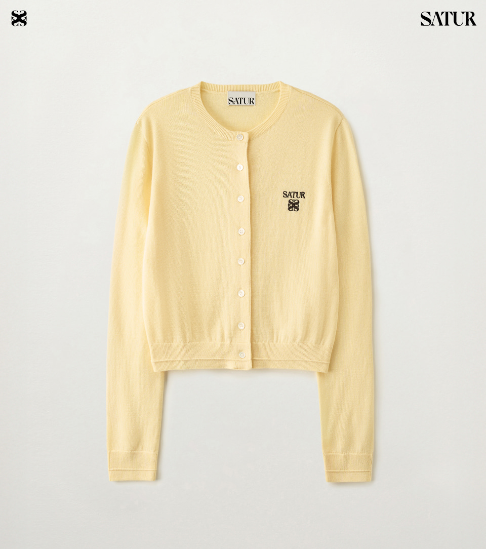 SATUR W Loren Basic Crewneck Fine Cardigan Yellow