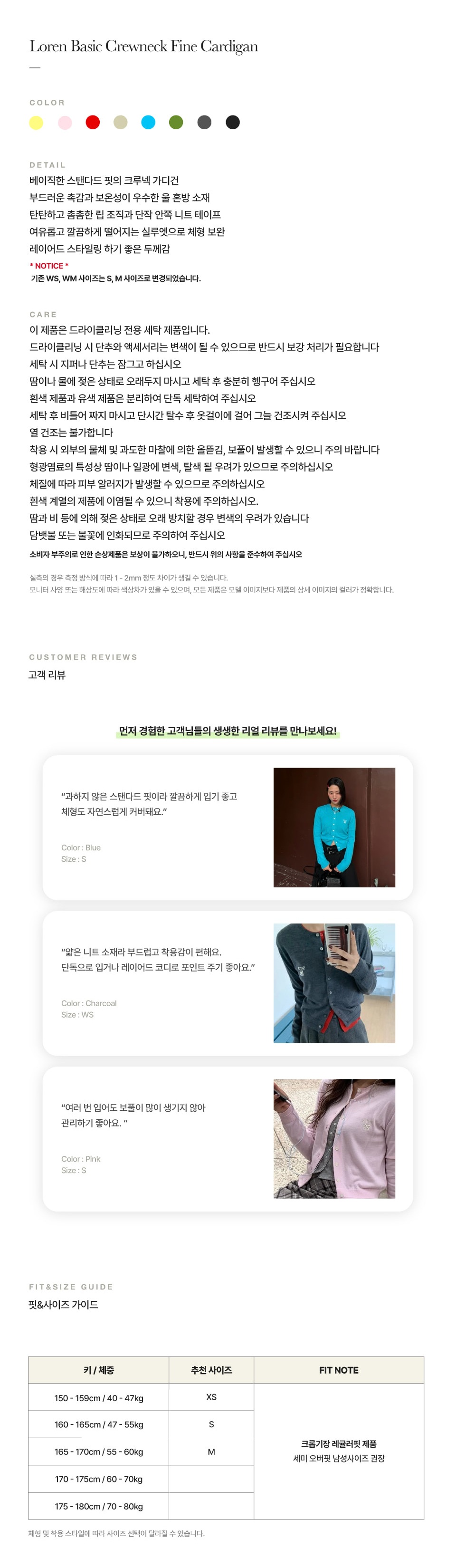 세터 우먼 로렌 베이직 크루넥 파인 가디건 옐로우