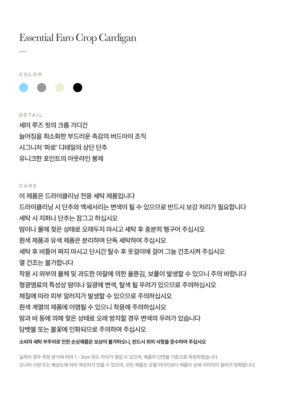 측정 방법에 따라 사이즈에 일부 오차가 있을 수 있습니다.