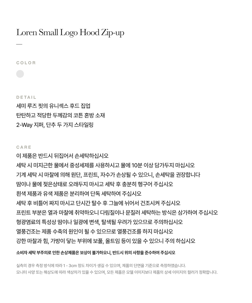[사은품 증정] 세터 로렌 스몰 로고 후드 집업 멜란지 화이트