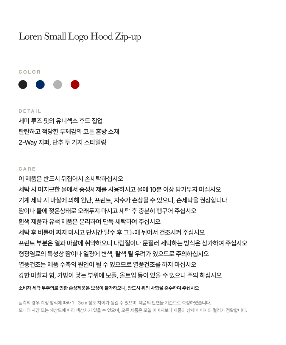 [사은품 증정] 세터 로렌 스몰 로고 후드 집업 네이비