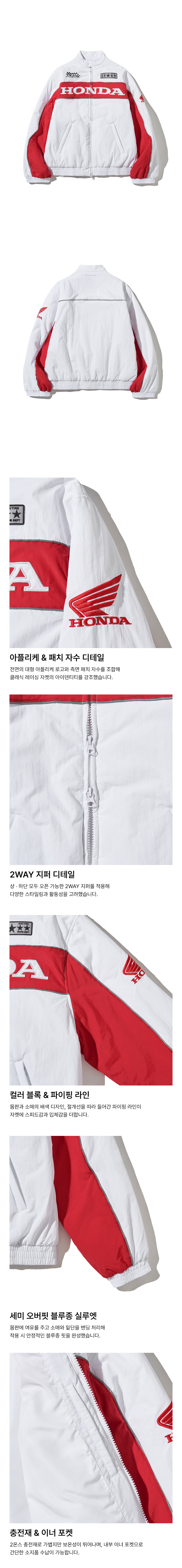 혼다 파이핑 모터사이클 블루종 자켓 화이트