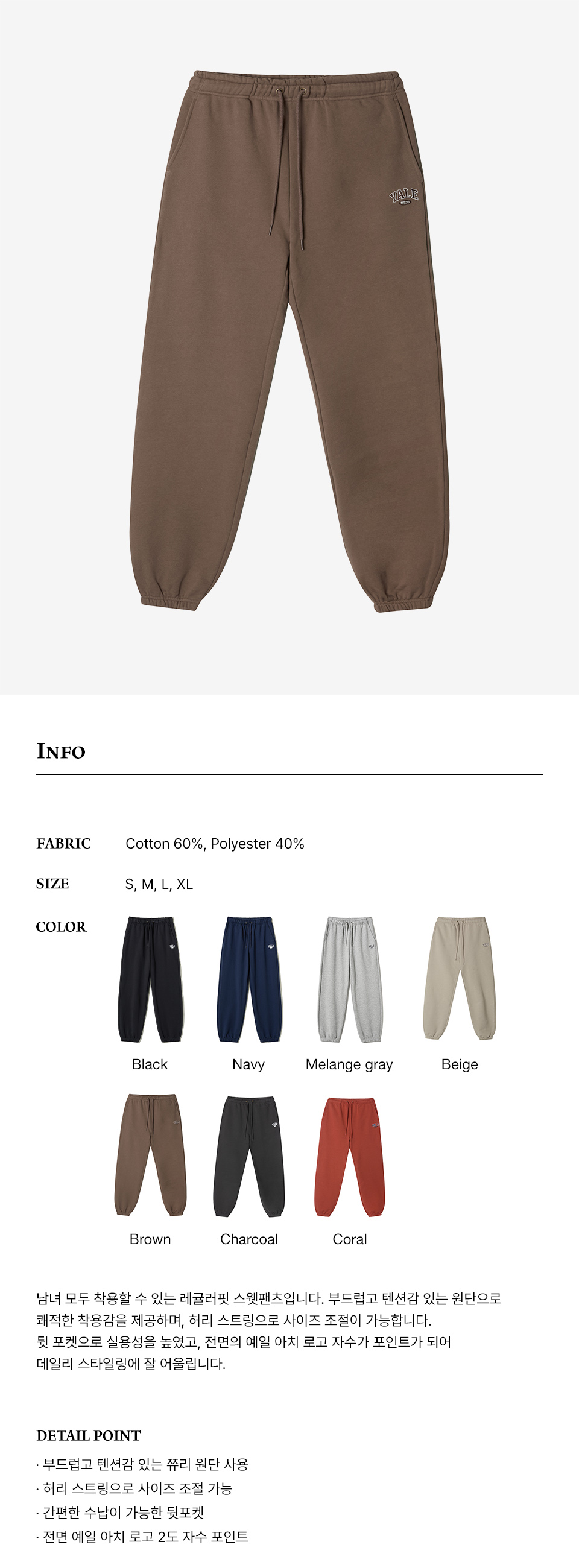 예일 스몰 투톤아치 스웨트 팬츠 브라운