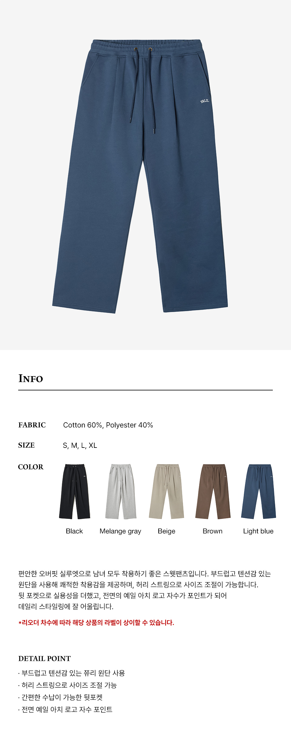 예일 스몰아치 원 턱 스웨트 팬츠 더스티 블루