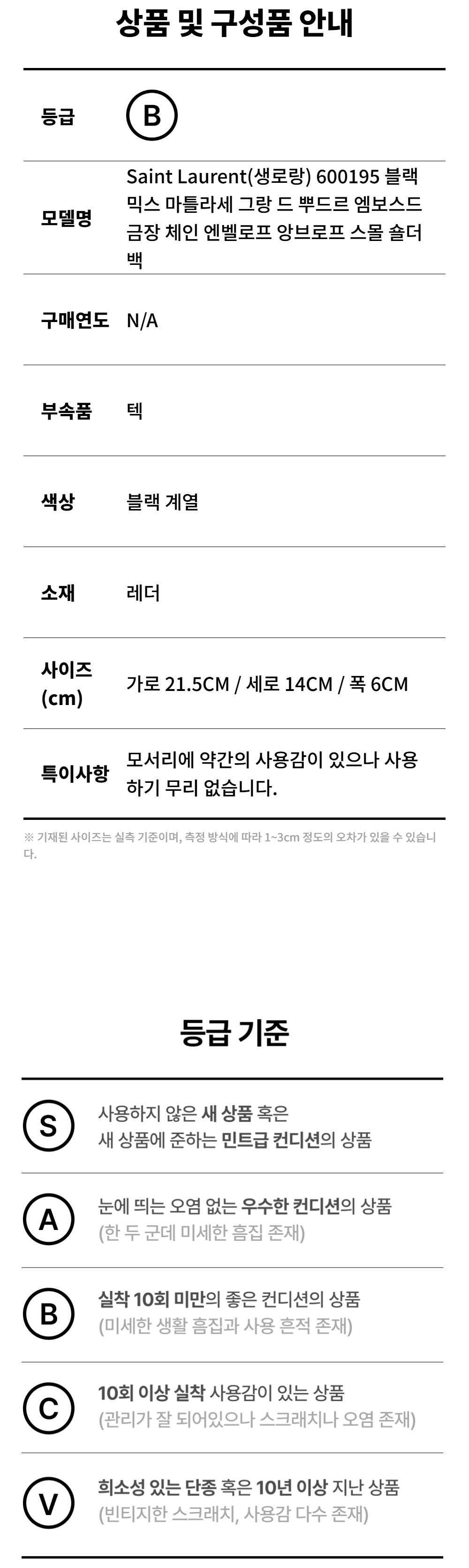 생로랑 600195 블랙 믹스 마틀라세 그랑 드 뿌드르 엠보스드 금장 체인 엔벨로프 앙브로프 스몰 숄더백