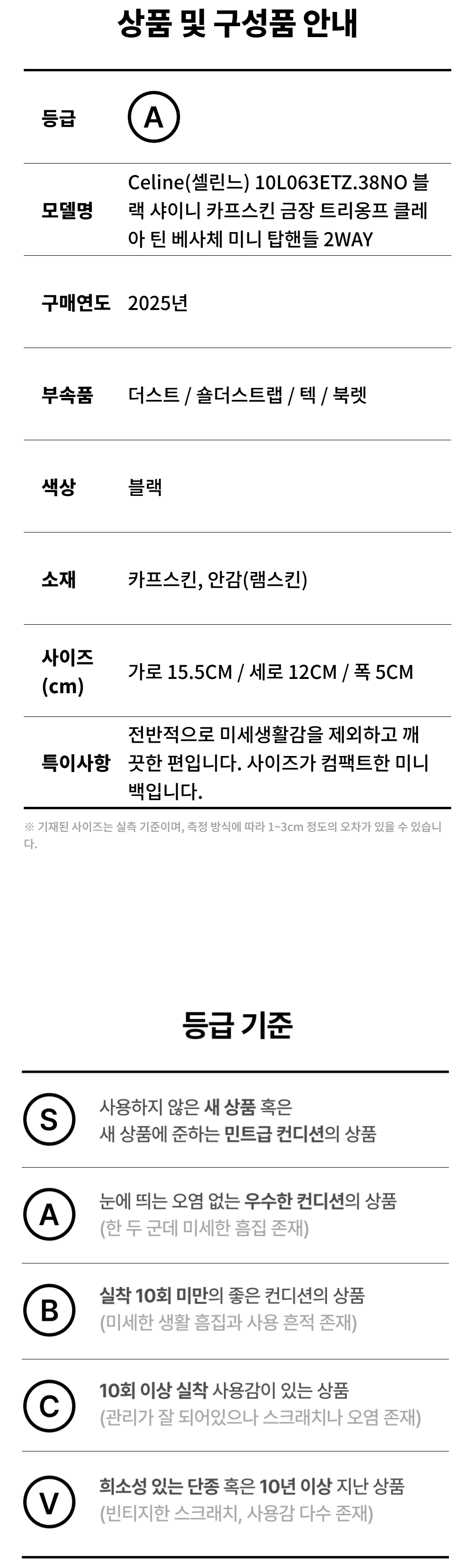 셀린느 10L063ETZ.38NO 블랙 샤이니 카프스킨 금장 트리옹프 클레아 틴 베르사체 미니 탑핸들 투웨이