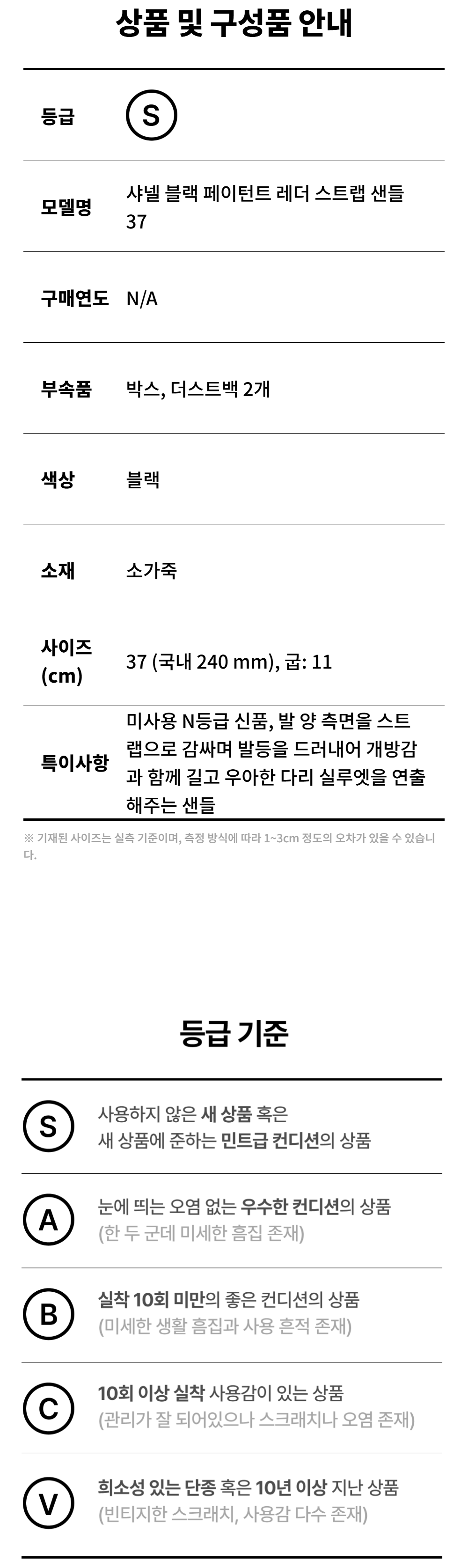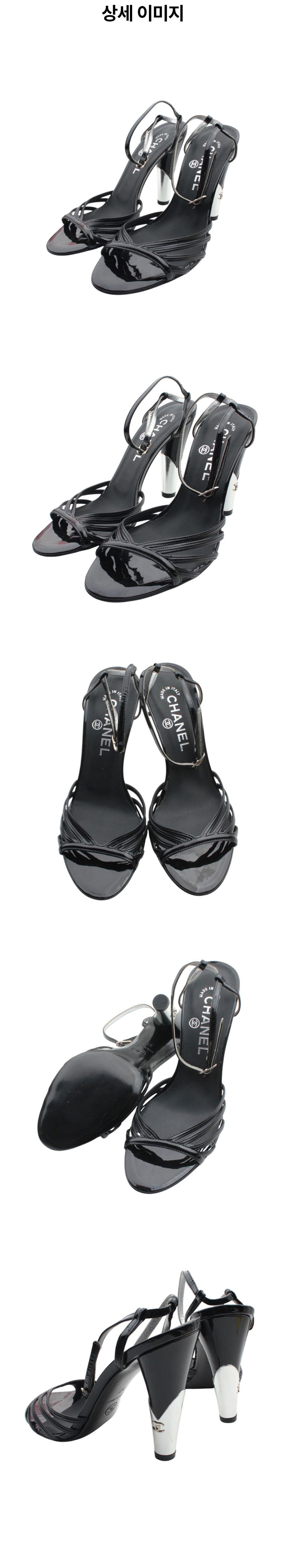 샤넬 블랙 페이턴트 레더 스트랩 샌들 37