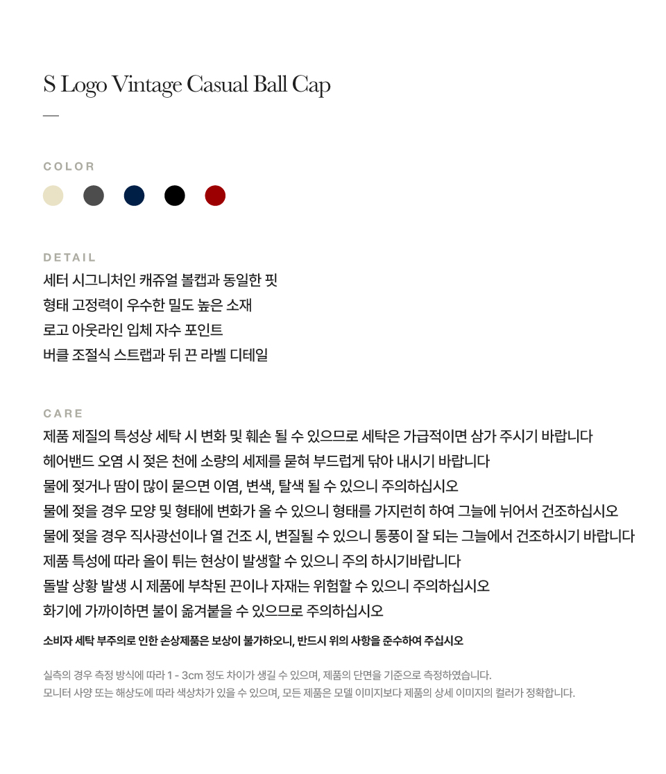 세터 S 로고 빈티지 캐쥬얼 볼캡 네이비