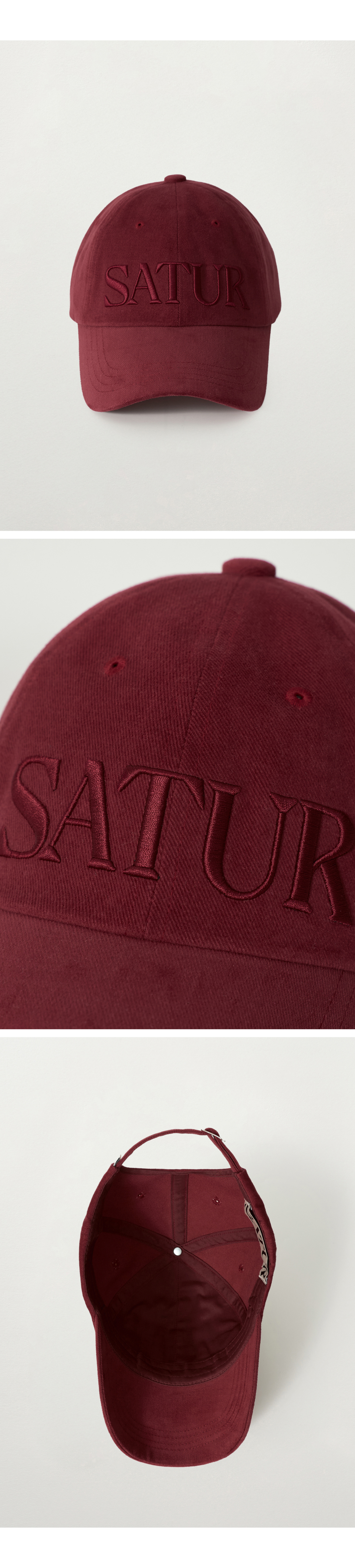 SATUR Vintage Casual Volume Embroidery Ball Cap Burgundy